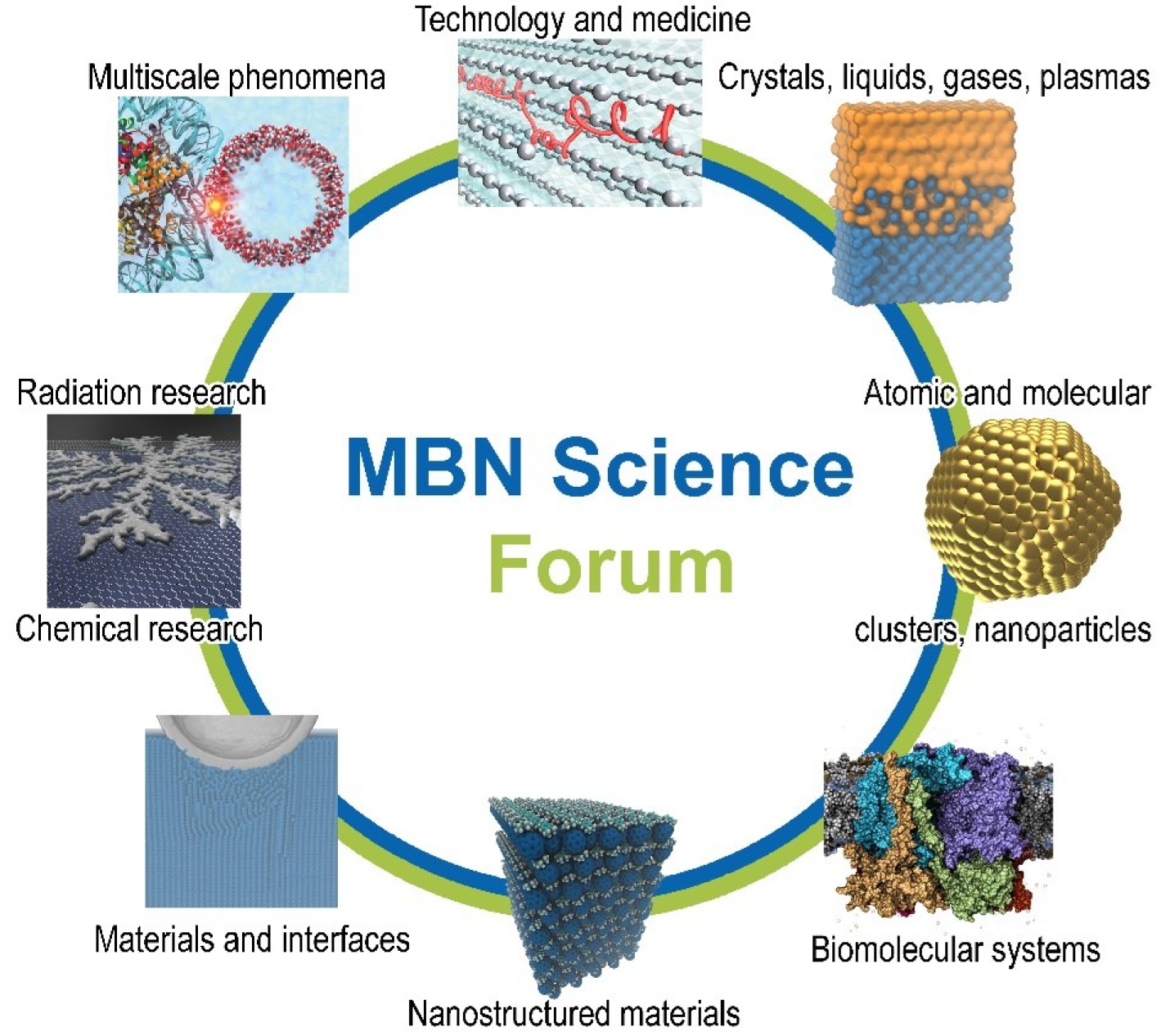 The MBN Science is the interdisciplinary field of research studying structure-formation and dynamics of animate and inanimate matter on the nano- and the mesoscales. Any form of condensed matter, including biological, consists of numerous components linked by different interactions. Important efforts in deepening of the molecular level understanding of different forms of condensed matter and their dynamical behaviour concern the origin, nature and evolution of various complex molecular systems, as well as the emergence of new features, properties, processes and functions involving the systems with increasing their size and complexity. Research in this field bundles up several traditional topics in theoretical physics and chemistry at the interface with Life Sciences and Materials Research under a common theme. The range of open challenging scientific problems in this field is very broad. The list of challenging topics in the field grows rapidly facilitating also the development of relevant theoretical and computational methods.