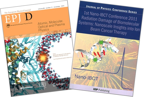 Left: Topical issue "Nano-scale Insights into Ion-beam Cancer Therapy" of the European Physical Journal D (eds. A.V. Solov'yov, N. Mason, P. Limão-Vieira, and M. Smialek-Telega) Right: Topical issue "1st Nano-IBCT Conference – Radiation Damage of Biomolecular Systems: Nanoscale Insights into Ion Beam Cancer Therapy" of the Journal of Physics: Conference Series (eds. B.A. Huber, Ch. Malot, A. Domaracka, and A.V. Solov'yov)