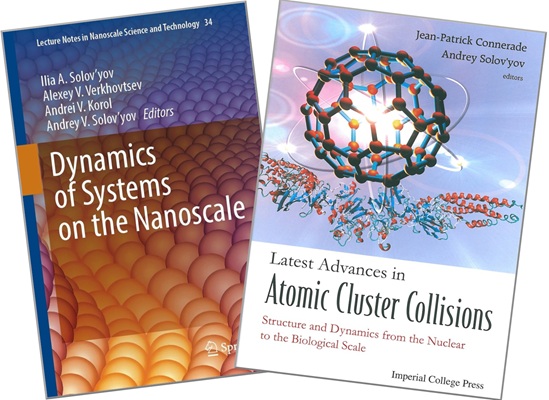Right: "Latest Advances in Atomic Clusters Collision: Structure and Dynamics from the Nuclear to the Biological Scale" (eds. J.-P. Connerade and A.V. Solov'yov) Imperial College Press, London, UK (2008); distributed by World Scientific (2008) URL: https://doi.org/10.1142/p573